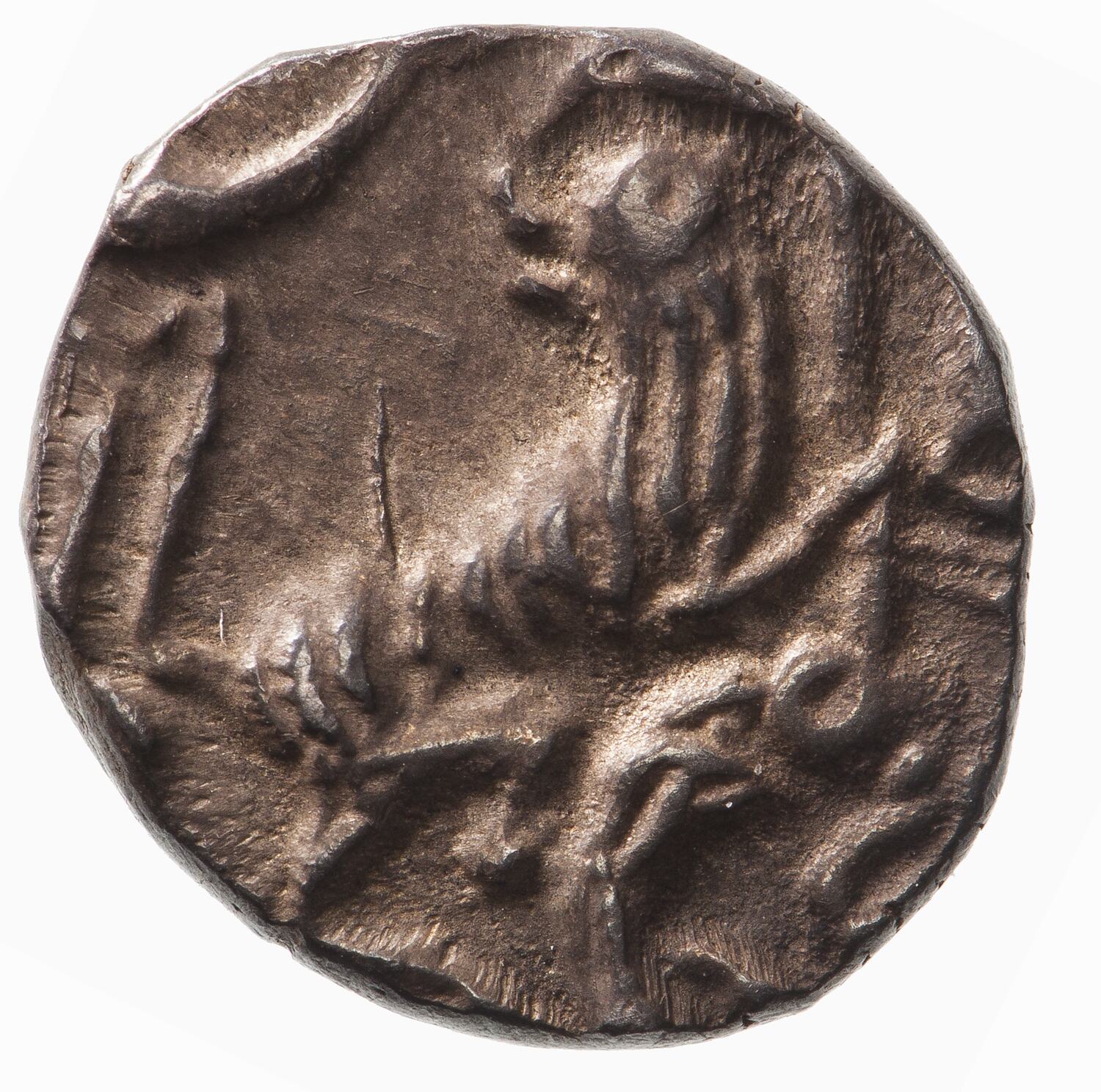 Persian legend, mostly off flan (Translation from Catalogue of the Coins in the Indian Museum Calcutta, Vol.IV p.34: struck coin in gold and silver by the grace and protection of God, The Naib of Mahdi, Nasir-d-din Haidar the King) with date 1248
