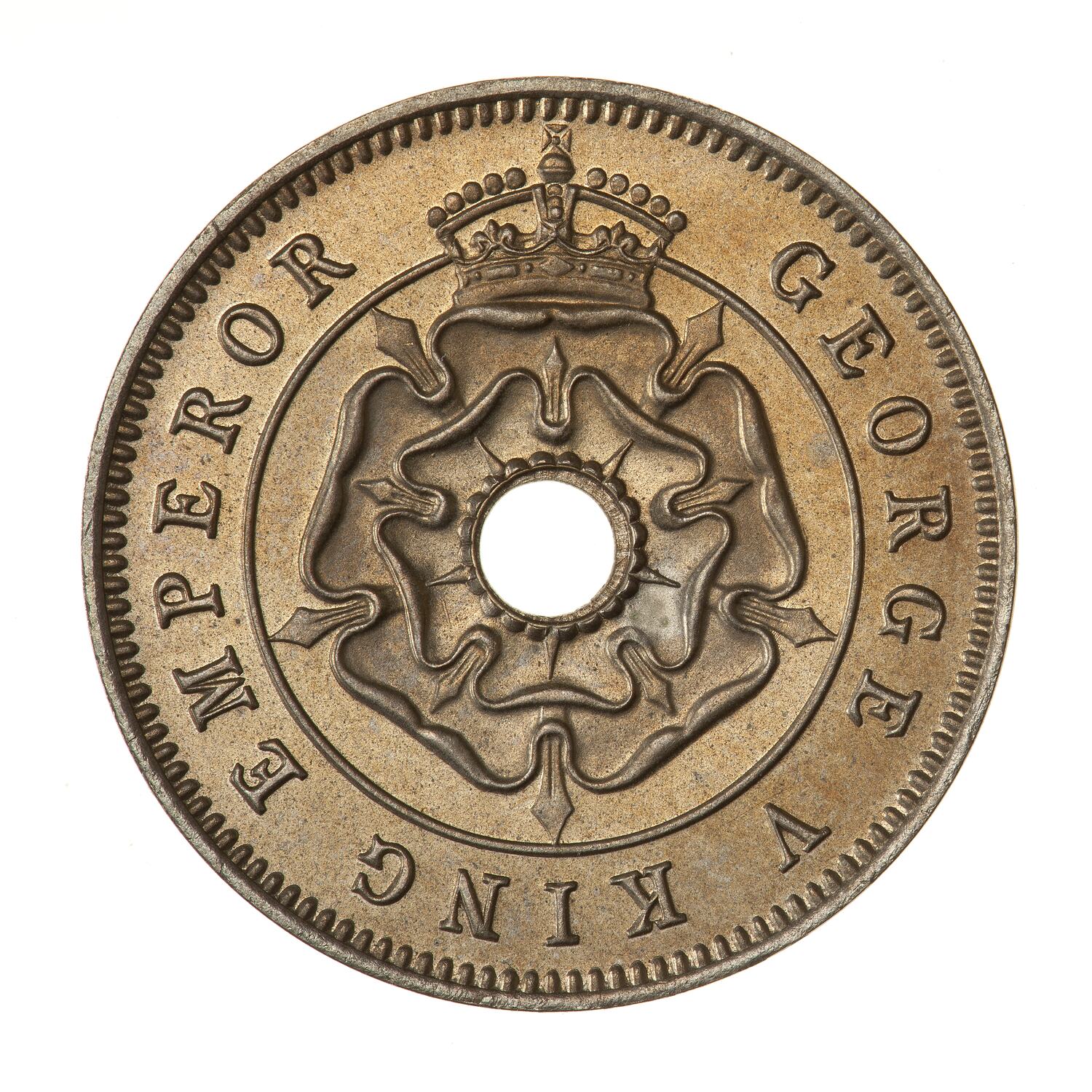 Around hole, a crowned rose; around, GEORGE V KING EMPEROR