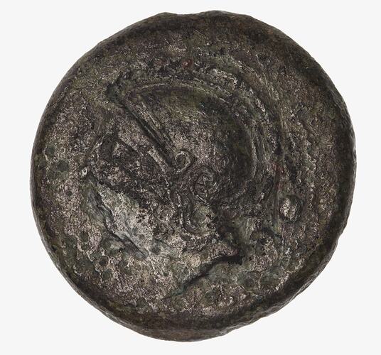 The Uncia denomination is indicated by a single bead on the obverse and reverse of the coin. There were 12 unciae to the As denomination