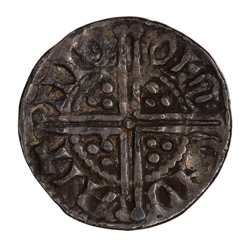 A long cross voided which breaks through a beaded circle, a quatrefoil in each angle; around, NIC OLE ONC ANT