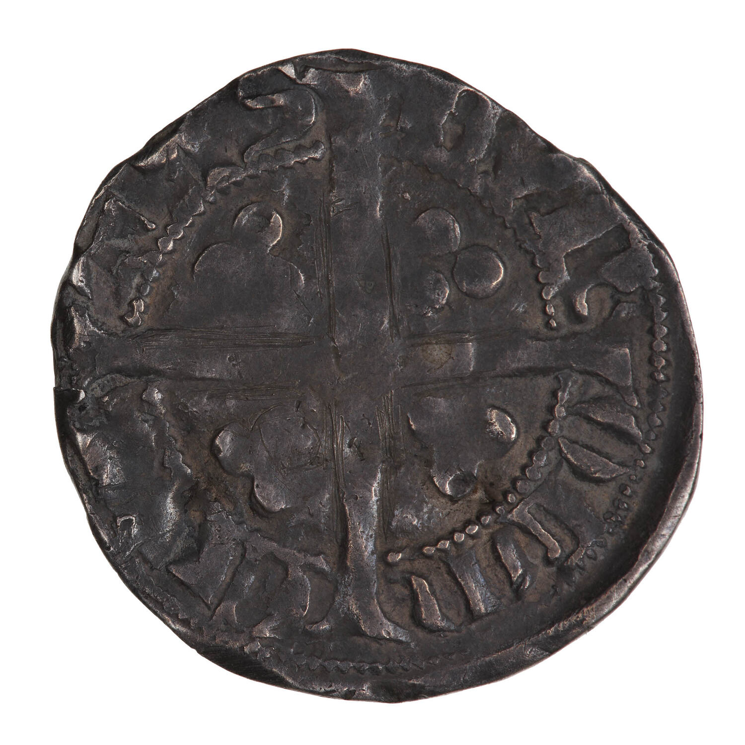 A long cross with three beads in the angles; around outside a circle of beads, CIVI TAS DVR OLM