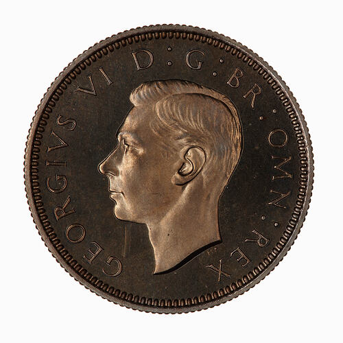 Bare head of the King facing left; below neck in small letters, HP (T. Humphrey Paget); around, GEORGIVS VI D: G: BR: OMN: REX