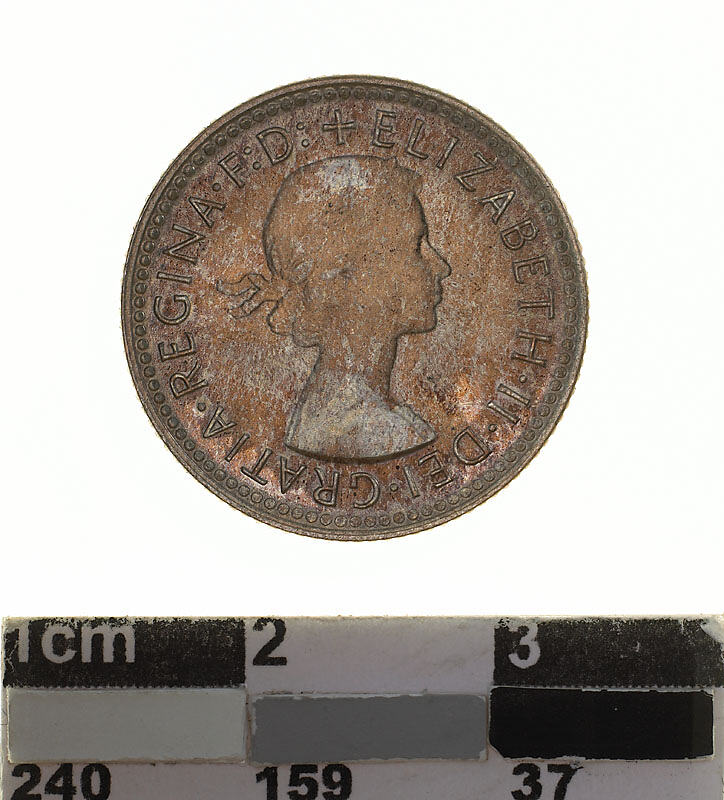 Laureate head of Elizabeth II facing right; around, + ELIZABETH . II . DEI . GRATIA . REGINA . F: D: