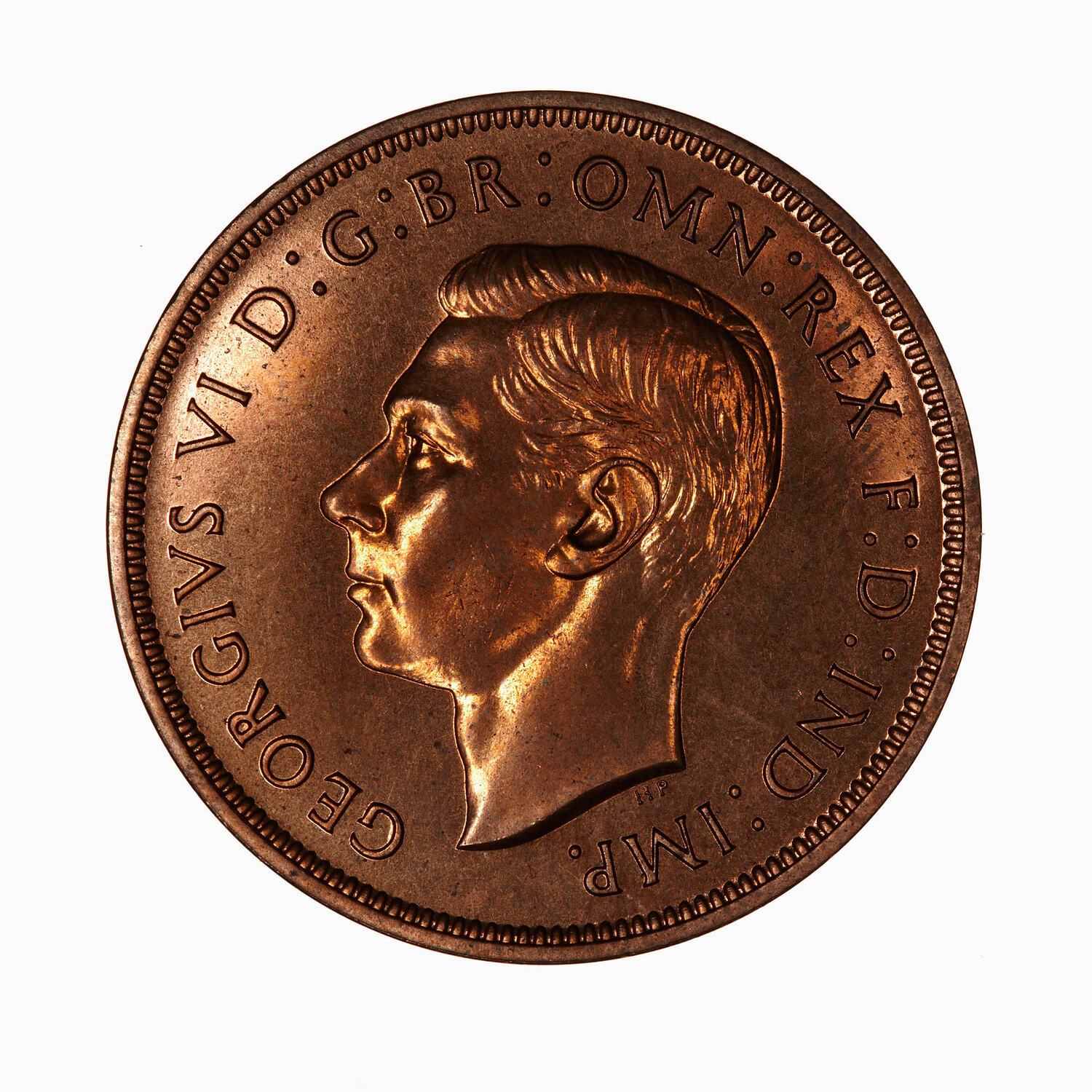 Bare head of the King facing left; below neck in small letters, HP (T. Humphrey Paget); around, GEORGIVS VI D: G: BR: OMN: REX F: D: IND: IMP: