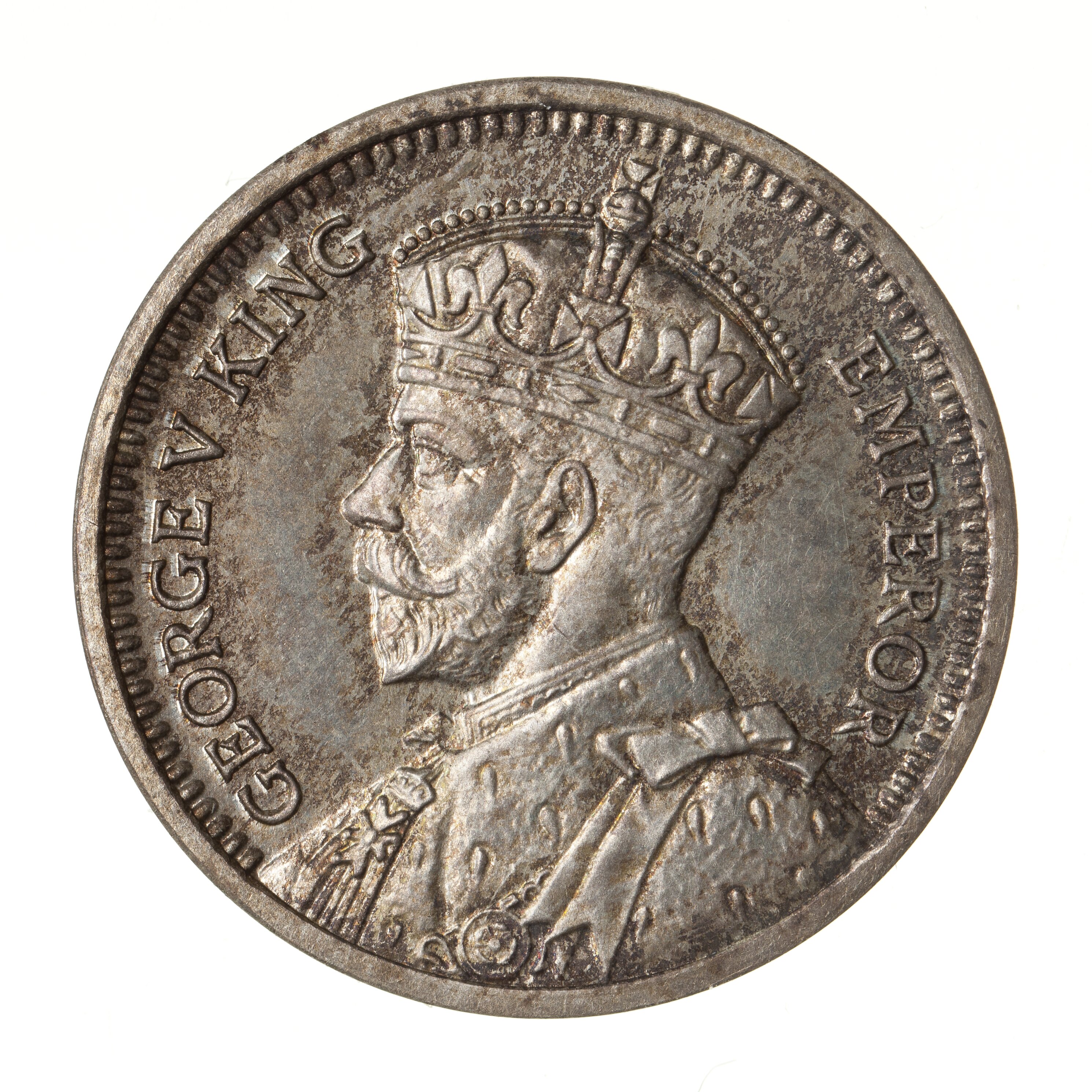 Crowned bust of George V facing left (extends to rim); around, GEORGE V KING EMPEROR (by Percy Metcalf)