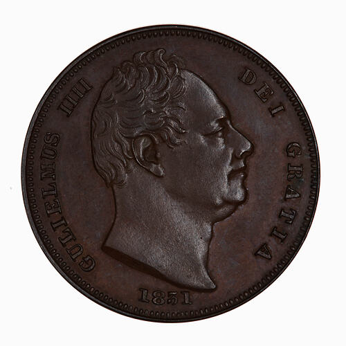 Bare head of the King facing right; around, GULIELMUS IIII DEI GRATIA; below, 1831
