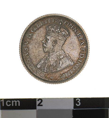 Obverse: GEORGIVS V D.G. BRITT: OMN:REX F.D. IND:IMP: Reverse: SIXPENCE 1911 ADVANCE AUSTRALIA