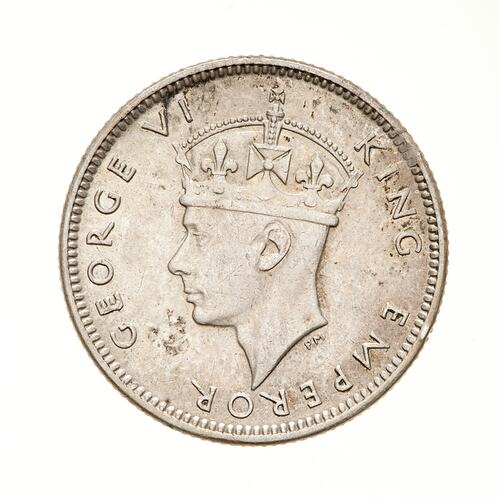 Crowned head of the King facing left; around, GEORGE VI KING EMPEROR