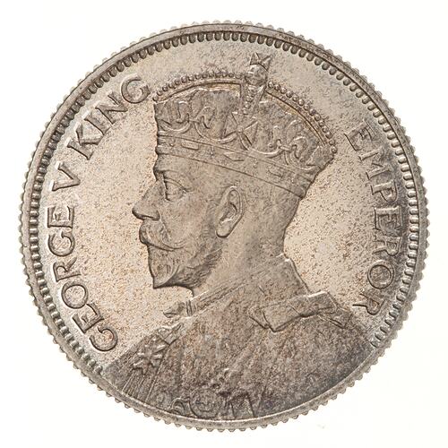 Crowned and draped bust of the King facing left; around, GEORGE V KING EMPEROR