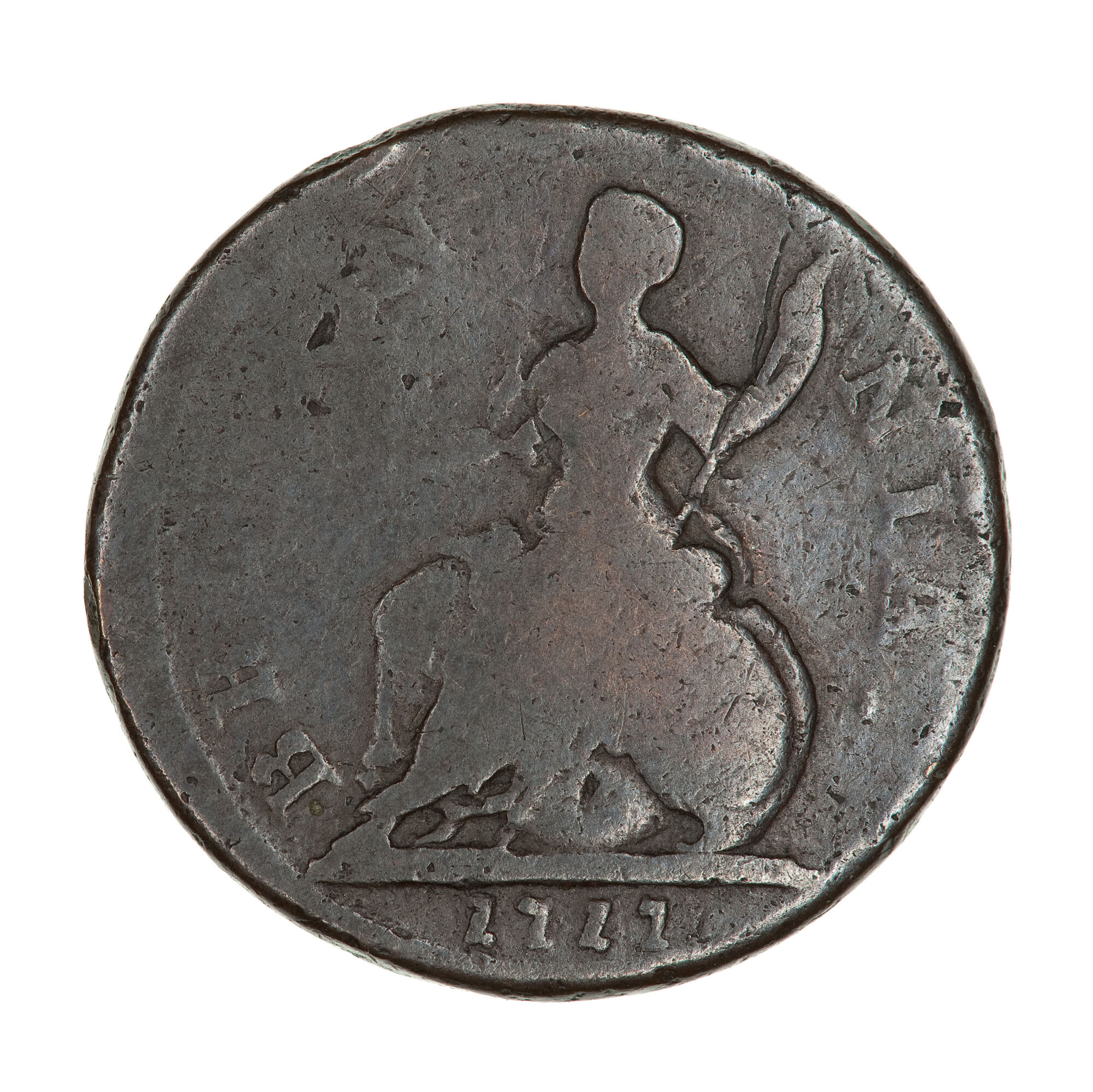 George I Farthing 'Dump' Issue, minted from copper at the Royal Mint, London in 1717.