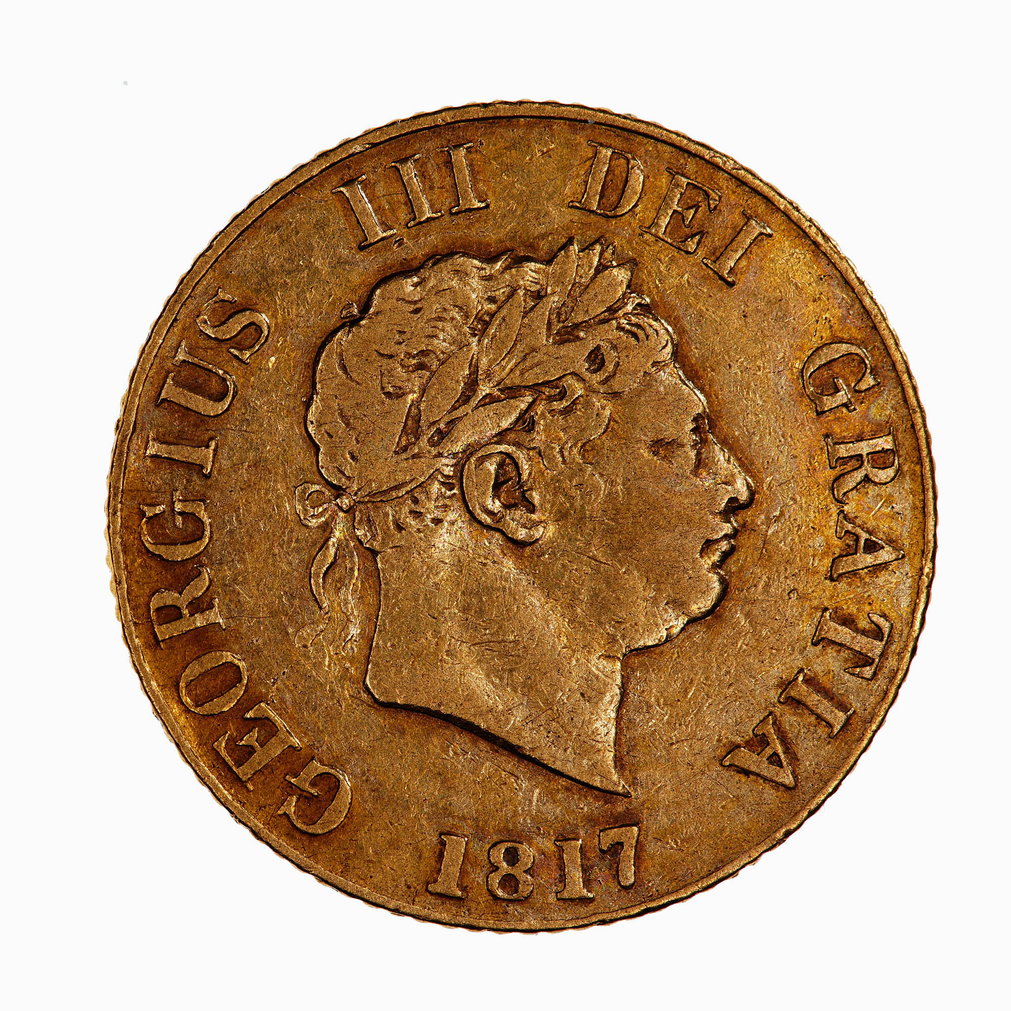 Laureate head of George III facing right above the date, 1817; around, GEORGIUS III DEI GRATIA