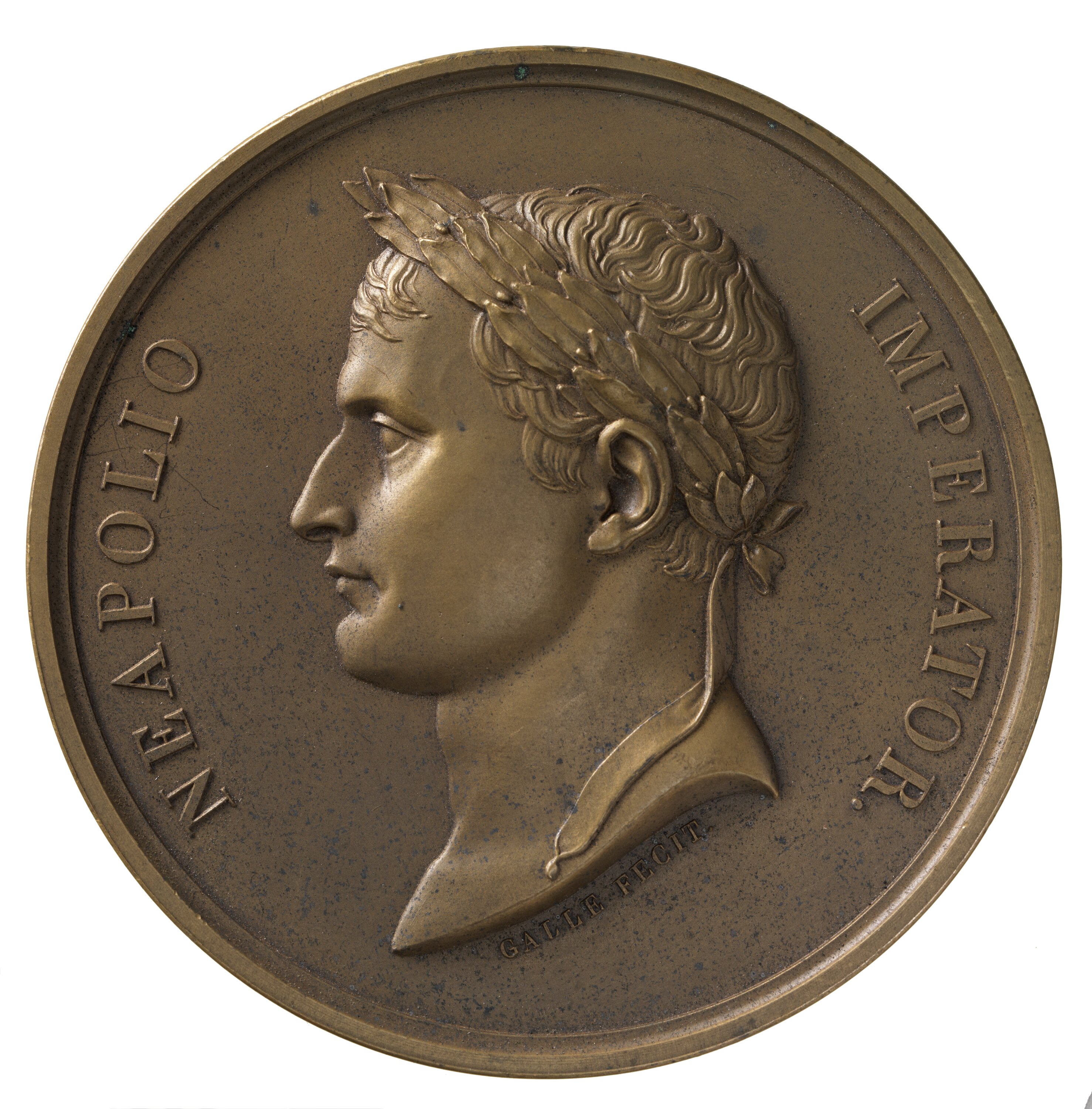 Laureate head facing left; around, NEAPOLIO IMPERATOR; below neck, GALLE FECIT.