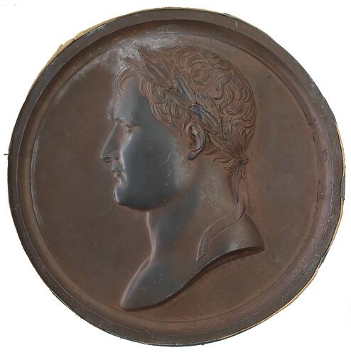 Uniface Portrait Medal of Napoleon (Electroformed), by Bertrand Andrieu, Issued by France. It was probably produced in commemoration of the marriage of Napoleon and Maria Louisa. Originally had a domed glass top as part of a framed group of medals.