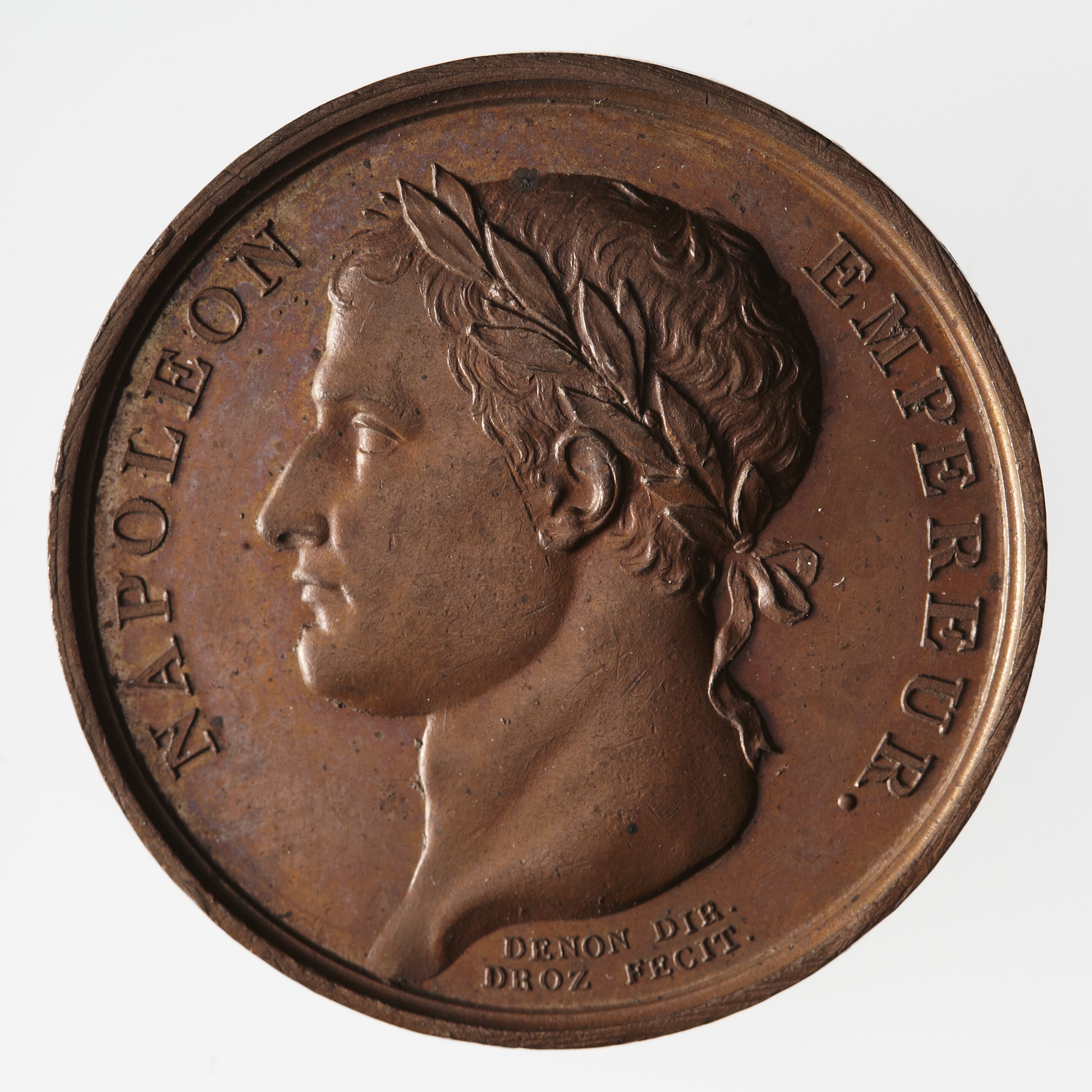 Head laureate facing left; around, NAPOLION EMPEREUR; below, DENON DIR. / DROZ FECIT