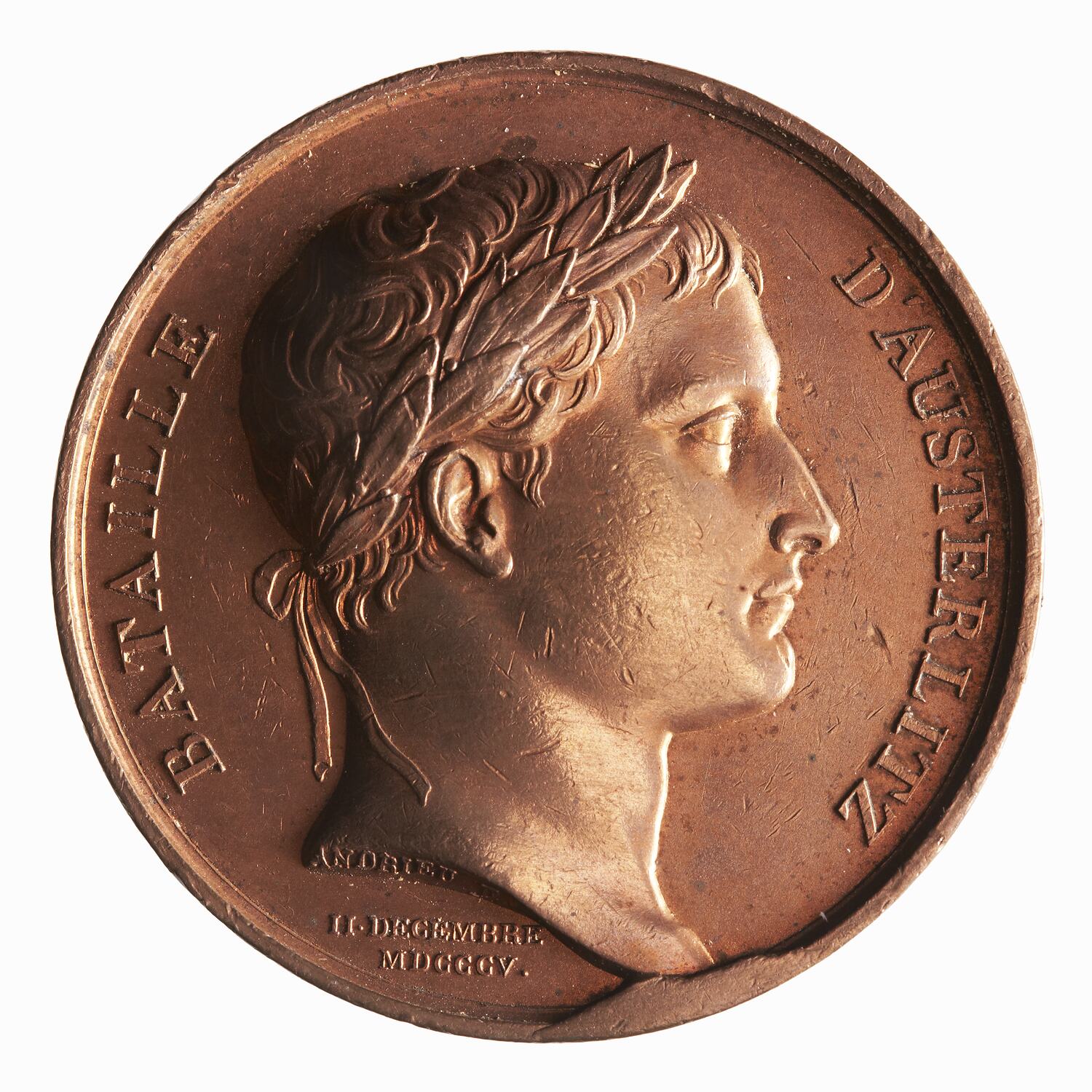 Laureate head of Napoleon facing right; around, BATTAILLE D'AUSTERLITZ; on neck truncation, ANDRIEU F.; below, II DECEMBRE / MDCCCV.