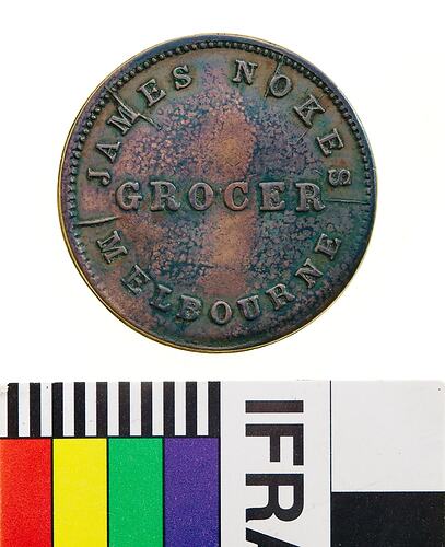 Obverse: JAMES NOKES GROCER MELBOURNE Reverse: AUSTRALIA