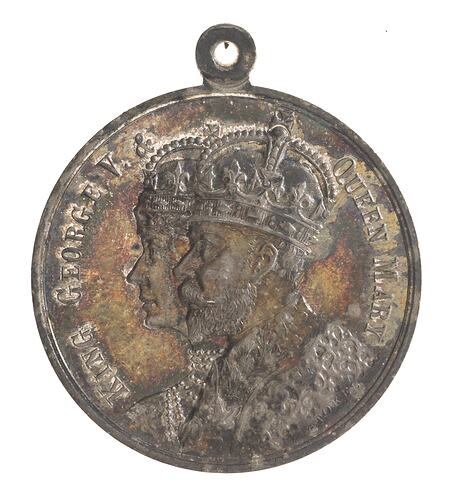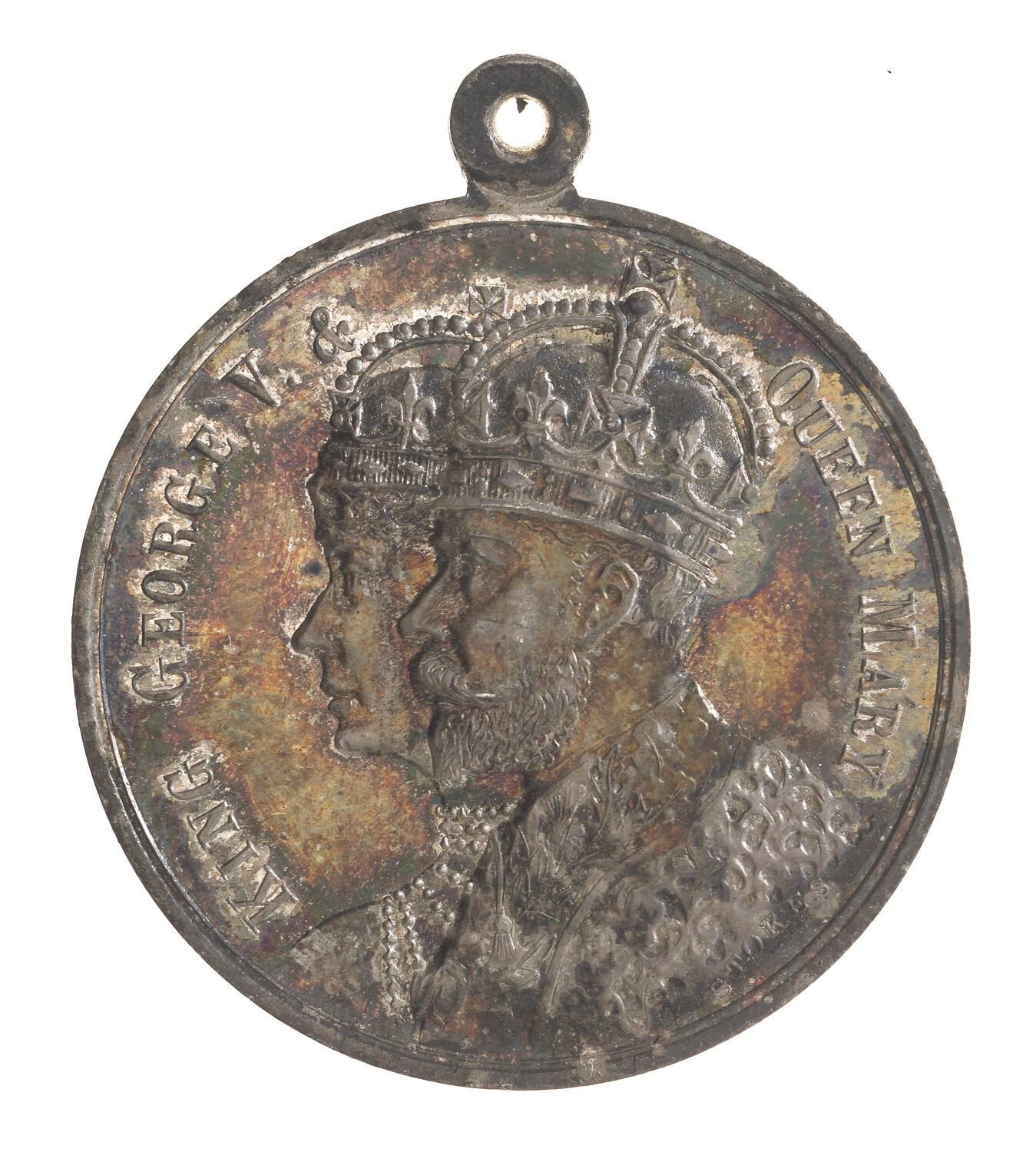 Other Details: Medal issued to celebrate the coronation of King George V and Queen Mary in 1911. George ascended the throne on his father's death on 9 May 1910. During his reign, which spanned World War I, the royal house abandoned the title the house of Saxe-Coburg-Gotha (or the house of Hanover or Brunswick) and became known as the house of Windsor. George died in 1936, and was succeeded briefly by Edward VIII.