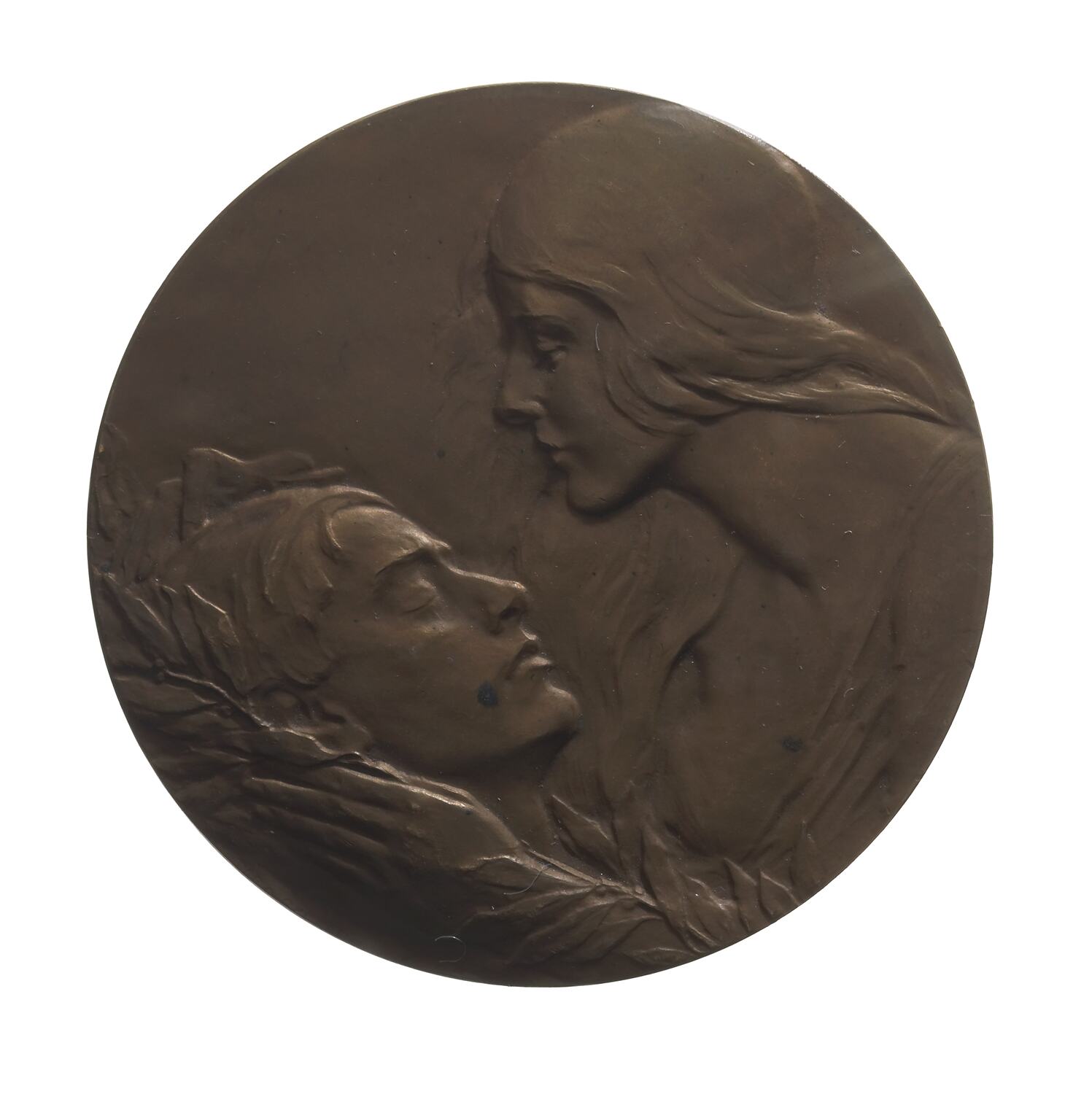 The medal was produced and sold to raise funds for of Australians and New Zealanders maimed in World War I. Dora Ohlfsen was one of Australia's foremost medallists in the first half of the twentieth century, although she principally lived in Europe and was better appreciated outside Australia. This medal is one of the most remarkable of all Australian commemorative medals. Its sensitive, romantic treatment of its subjects recalls European, and particularly French, medallic art. It was made at the artist's expense. She had worked as a nurse for the Red Cross in Italy during World War I, and was deeply moved by the experience.