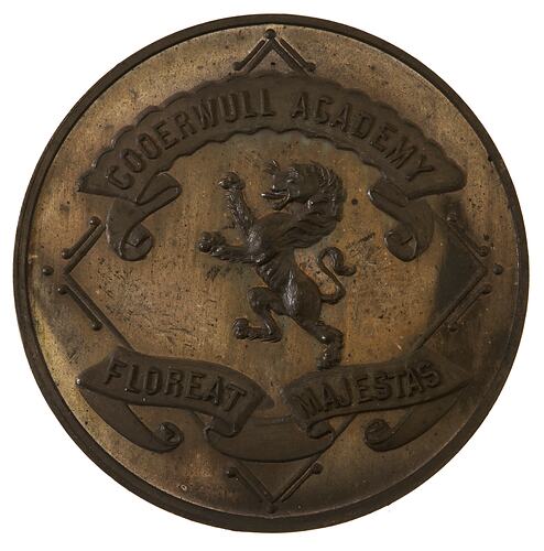 Obverse: COOERWULL ACADEMY FLOREAT MAJESTAS Reverse: DUX OF SCHOOL
