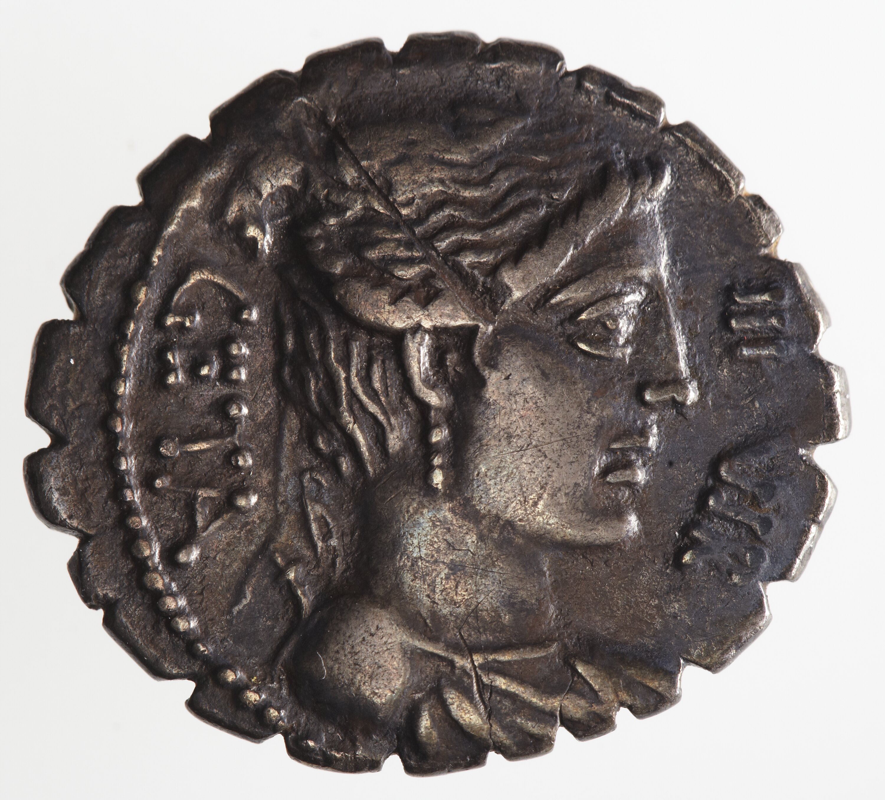 Denarius serratus issued by the Ancient Roman Republic in 68 BC