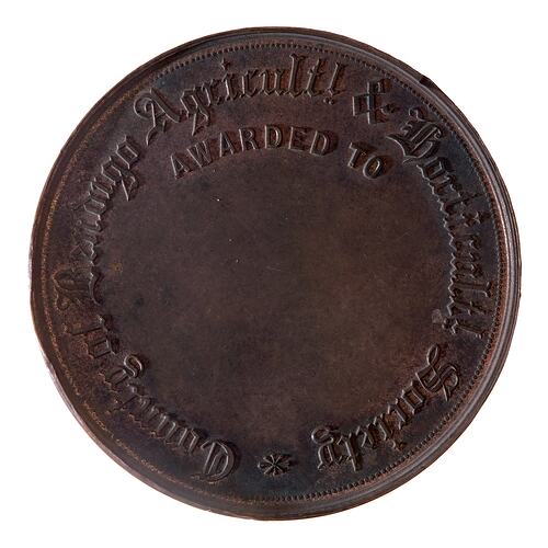 Medal - County of Bendigo Agricultural and Horticultural Society Bronze Prize, c. 1880 (AD)