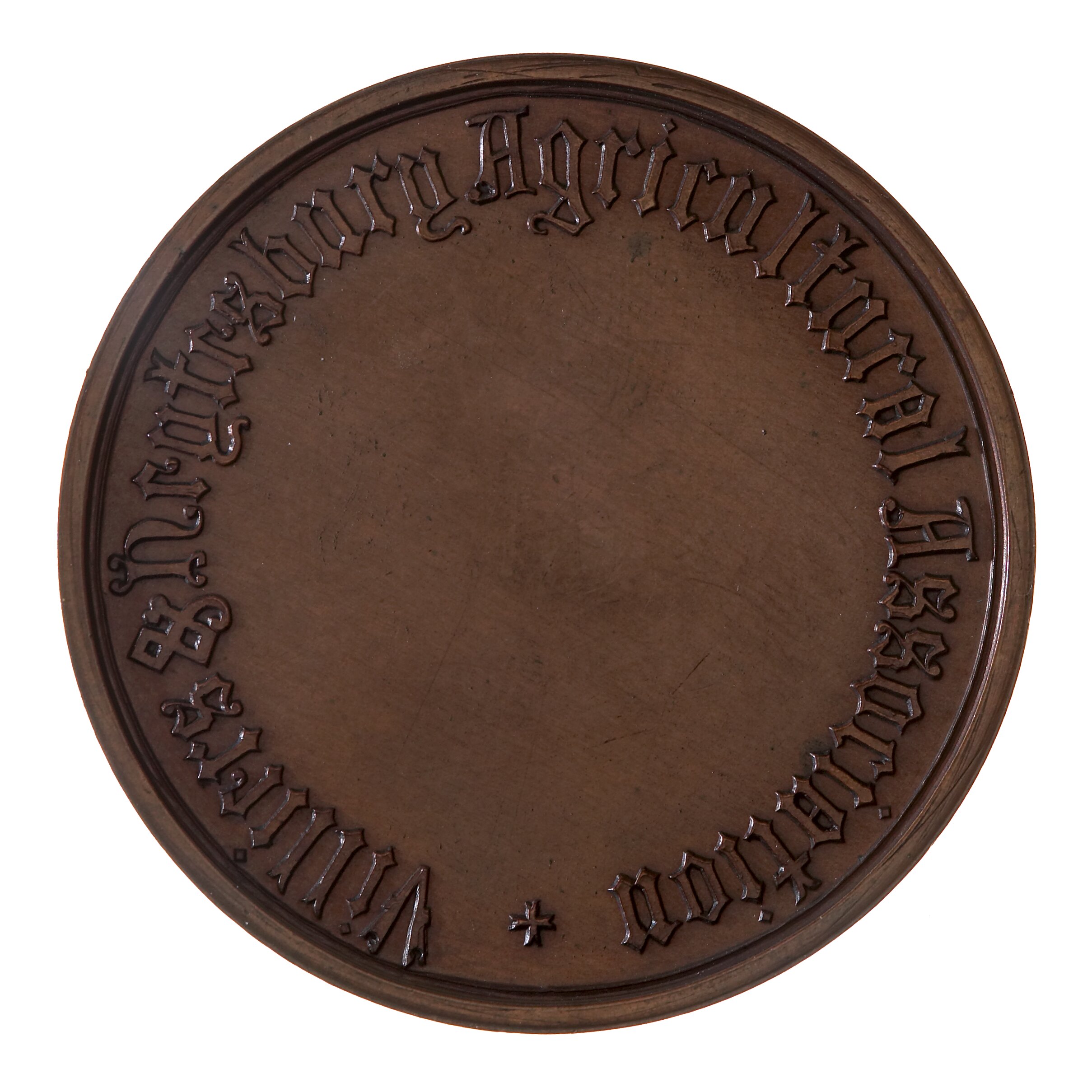 The lettering on the obverse is in an unusual script with the letter 'e' looking much like a 'r'. Around rim, Villiers & Heytesbury Agricultural Association +