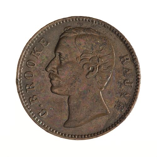 Sir Charles Johnson Brooke, depicted on the obverse of this coin, became Rajah of Sarawak after the death of James Brooke in 1868.