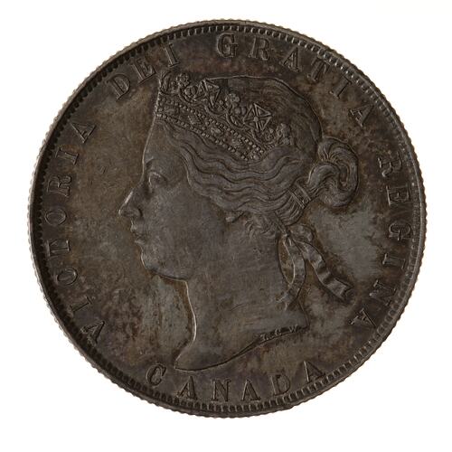 Head of the Queen facing left wearing a coronet; around, VICTORIA DEI GRATIA REGINA; below, CANADA; artist's initials, L.C.W., on neck truncation