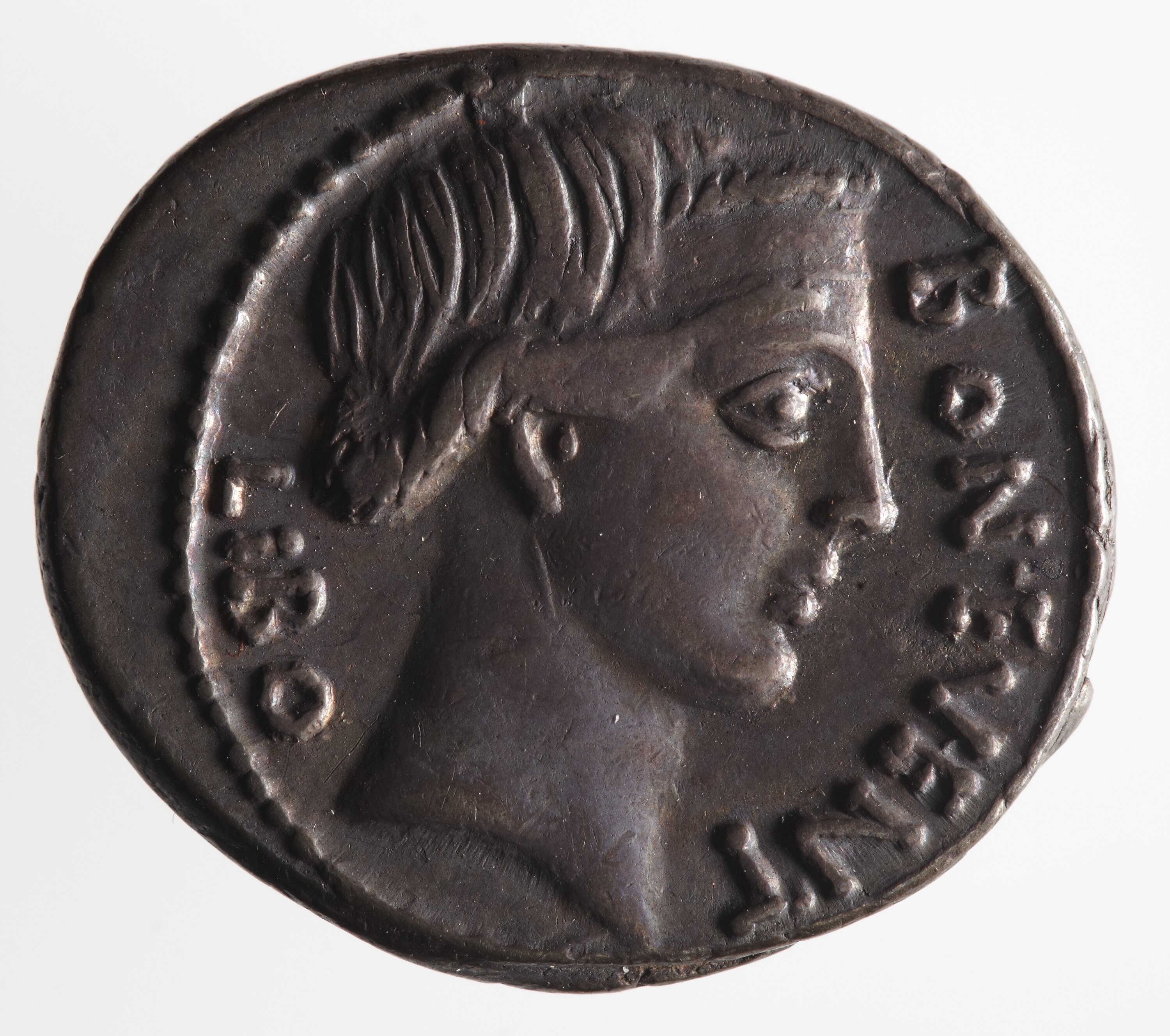Head of Bonus Eventus facing right; in front, BON. EVENT; behind, LIBO