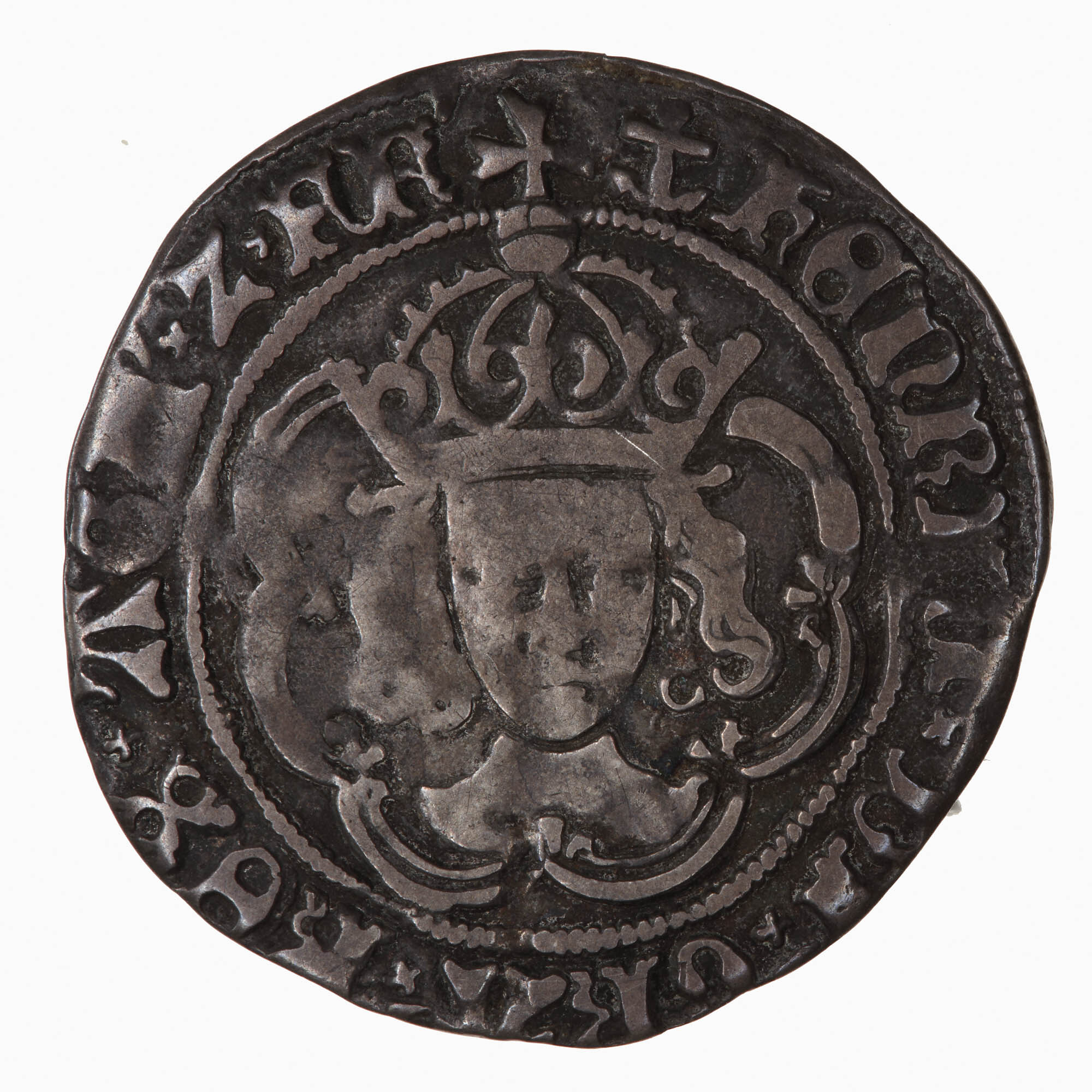 A crowned bust of the King facing, the crown has the outer arch jewelled; around (mm anchor) HENRIC DI GRA REX AGLI Z FR