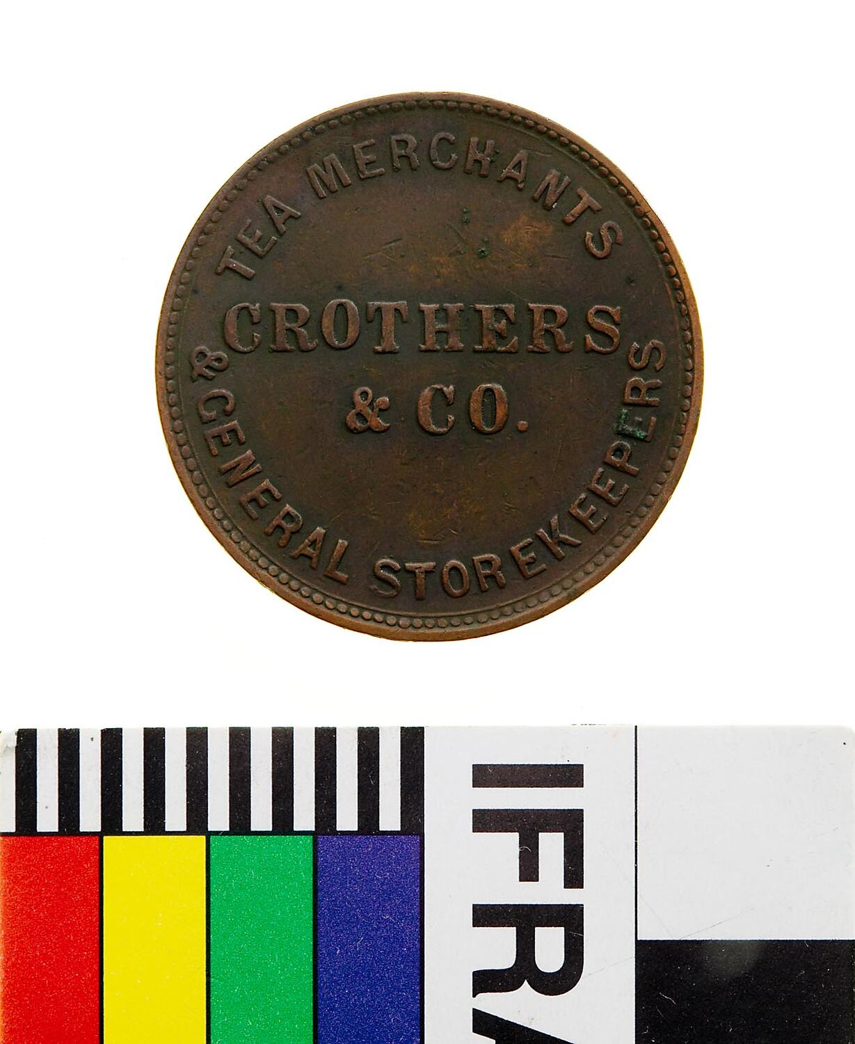 Obverse: CROTHERS & CO. TEA MERCHANTS & GENERAL STOREKEEPERS Reverse: THE ORIGINAL CASH STORE MAIN ST. STAWELL