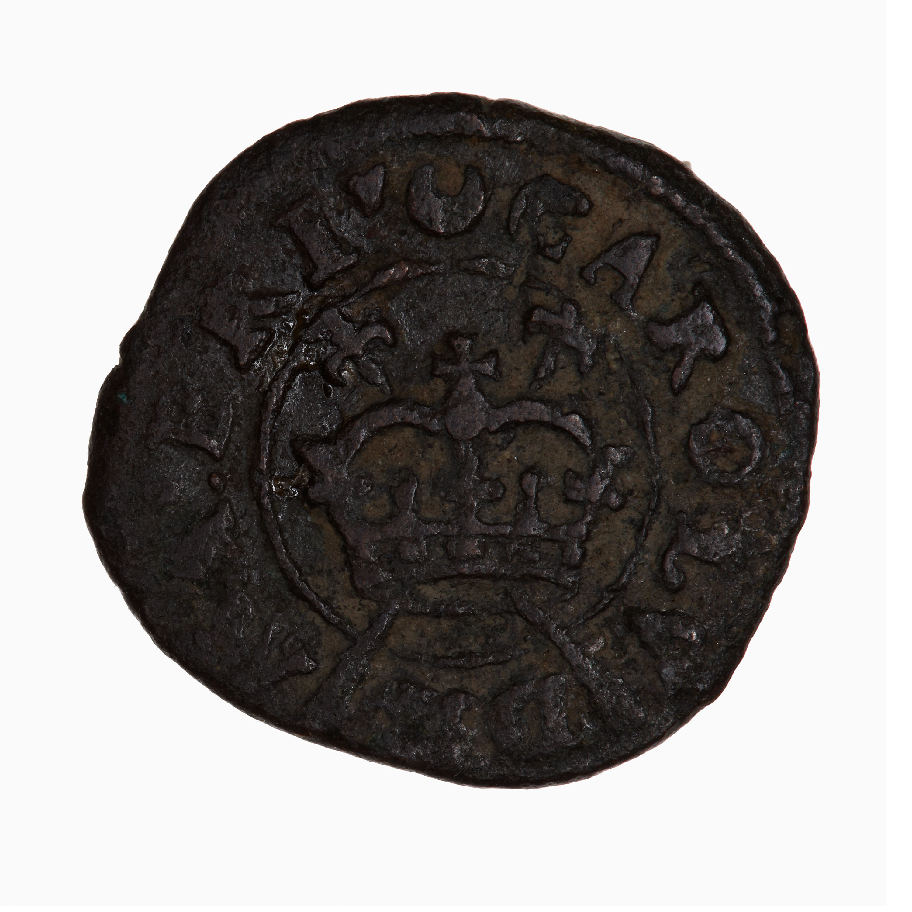 Copper strike of royal farthing token made after a proclamation of 1 March 1635/6 granting twenty-one years to Lord Maltravers and Sir Francis Crane, others were later responsible for the issue but the design remained unchanged. A farthing is a 1/4 penny.