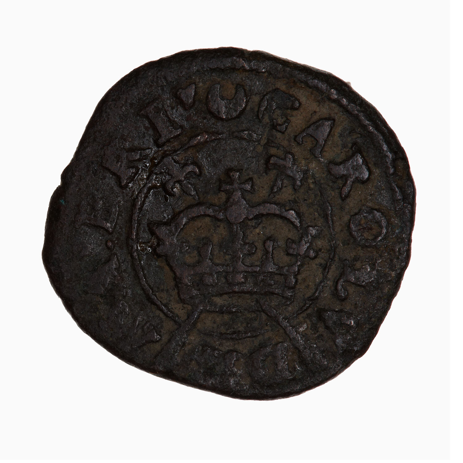 At centre within a line circle, a crown with crossed sceptres behind; around, (mm. crescent) CAROLV D G MA BRI