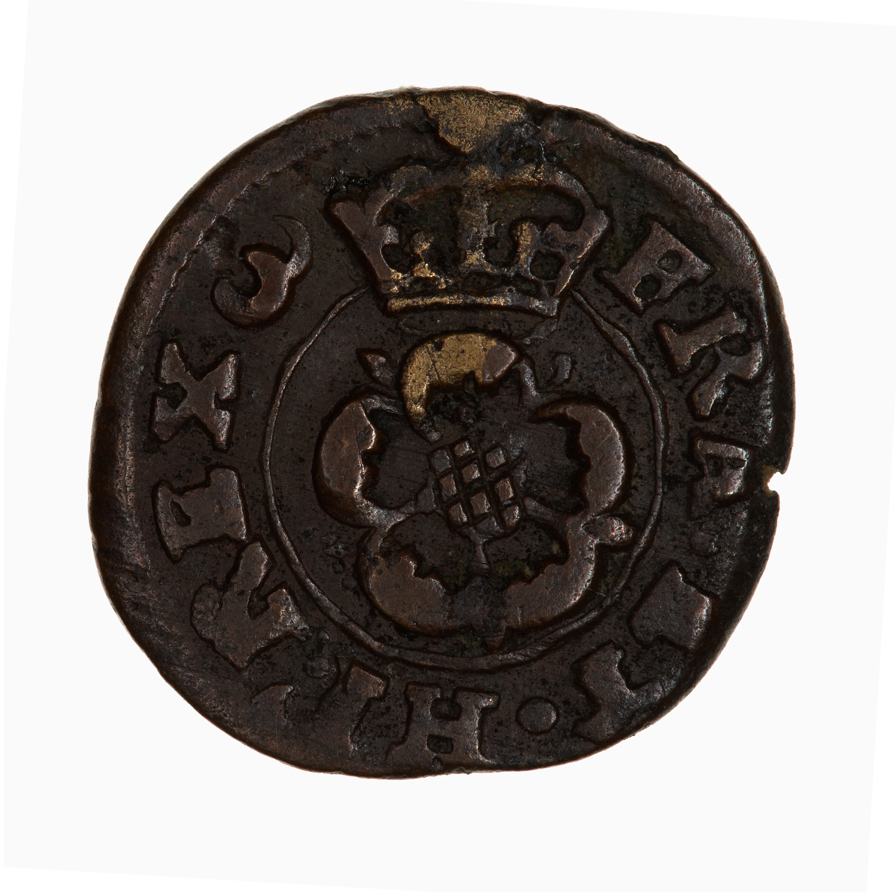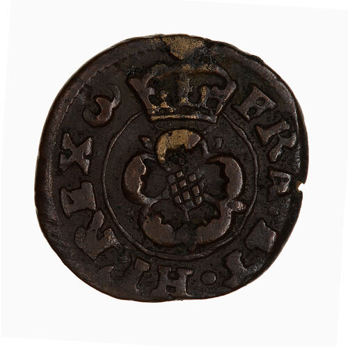 At centre within a line circle, a rose; above, crown; around, FRA ET HI REX (mm.crescent)