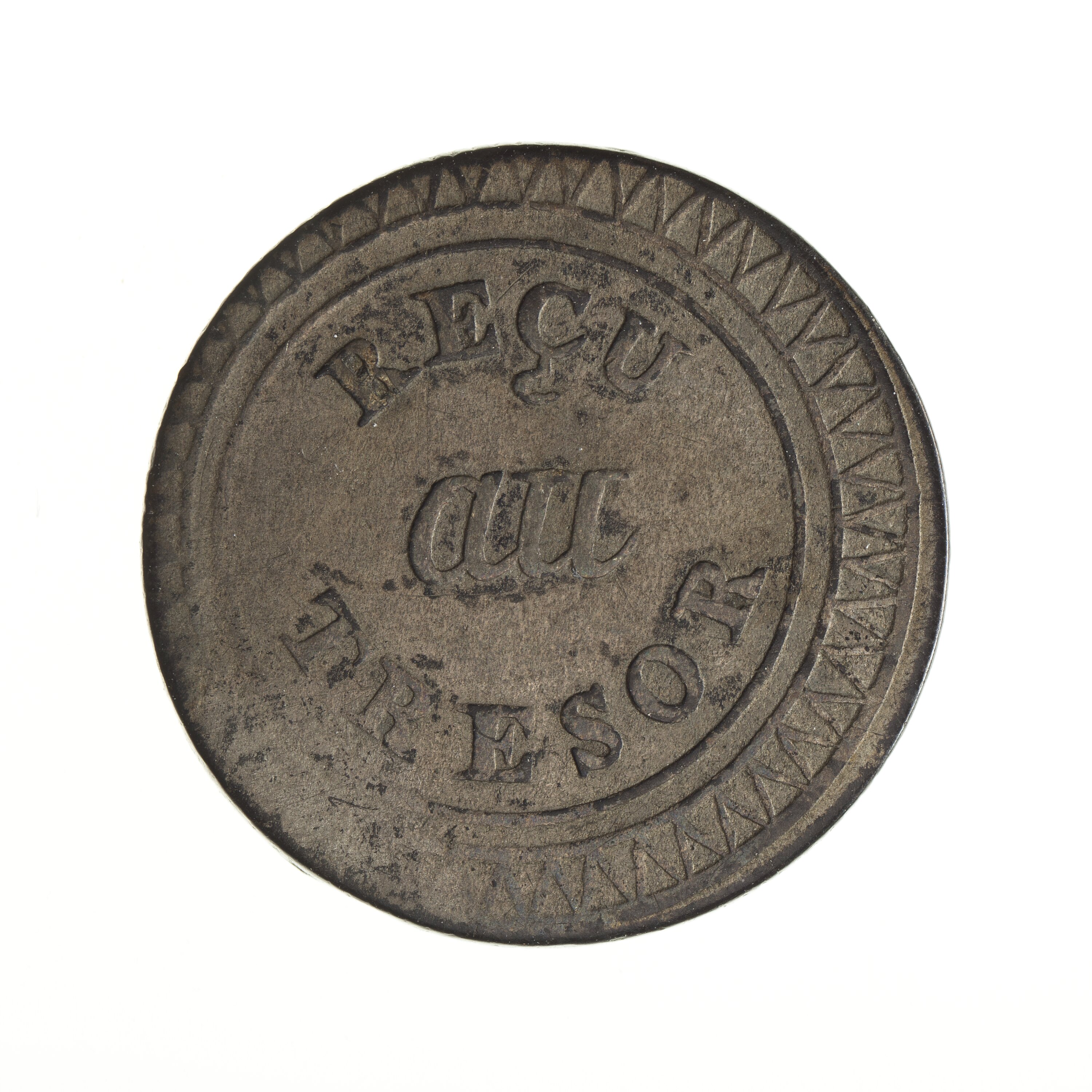 Within a circle, RECU / au / TRESOR