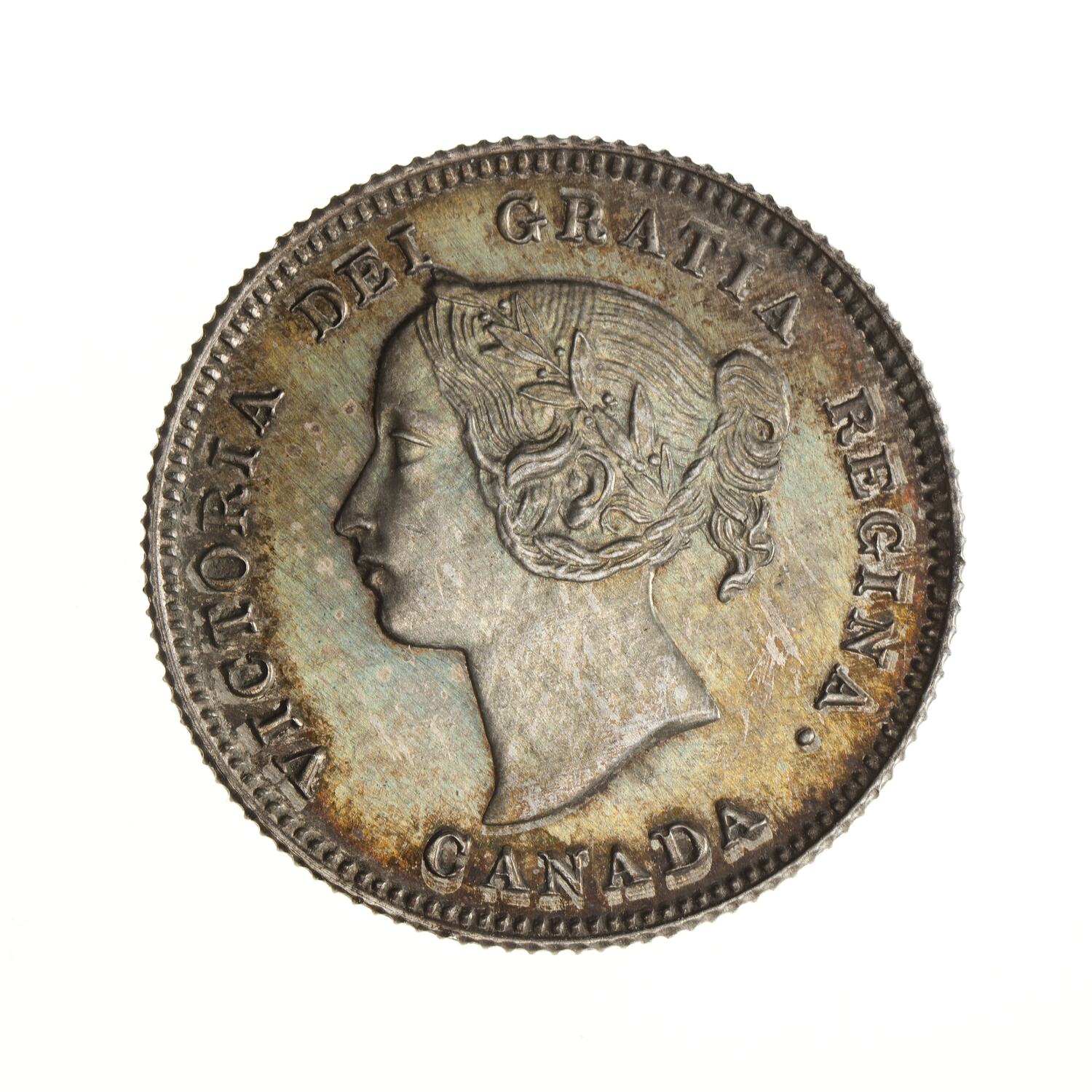 Laureate head of the Queen facing left; around, VICTORIA DEI GRATIA REGINA; below, CANADA