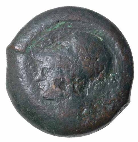A copper litra coin issued by the city of Syracuse, Sicily, 344-336 BC