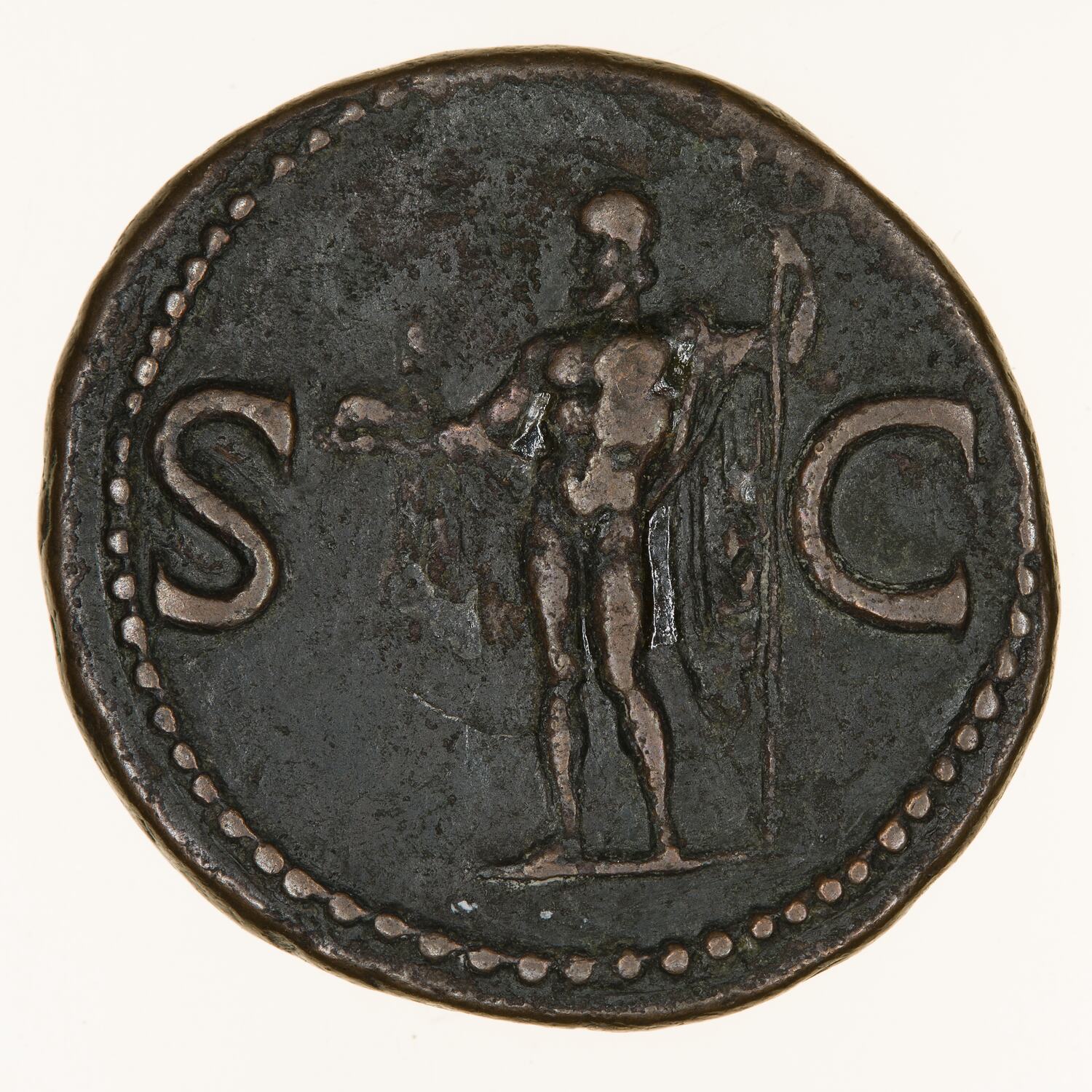 Copper As probably struck during the reign of Gaius, Ancient Roman Empire, in the name of Agrippa during the period 37-41 AD or later. Minted by Rome. "When were the enormously common asses in the name of M. Agrippa produced? In their day, whenever that was, they must have formed a solid proportion of the aes in circulation. Two main views have recently been propounded, and on precise grounds of analysis and argument: first, that they began under Tiberius c. 22-8, continuing under Gaius and Claudius, and secondly that they belong to the years 37-41 under Gaius alone, possibly with some Claudian continuation. For the moment absolute certainty seems impossible, but the later date, 37-41, seems to present a slightly greater margin of probability," Sutherland, RIC Vol. I revised, p. 89