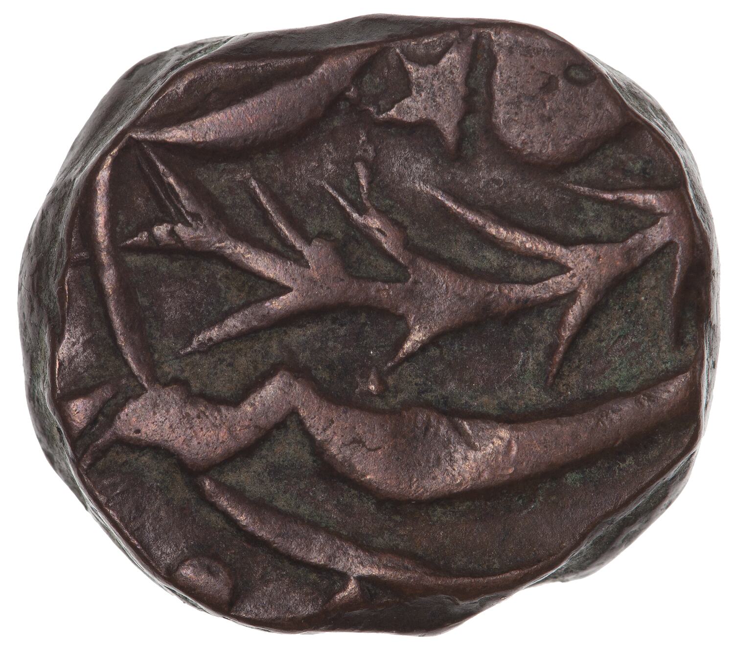 At centre, a palm branch; around, Persian inscription (mostly off flan)