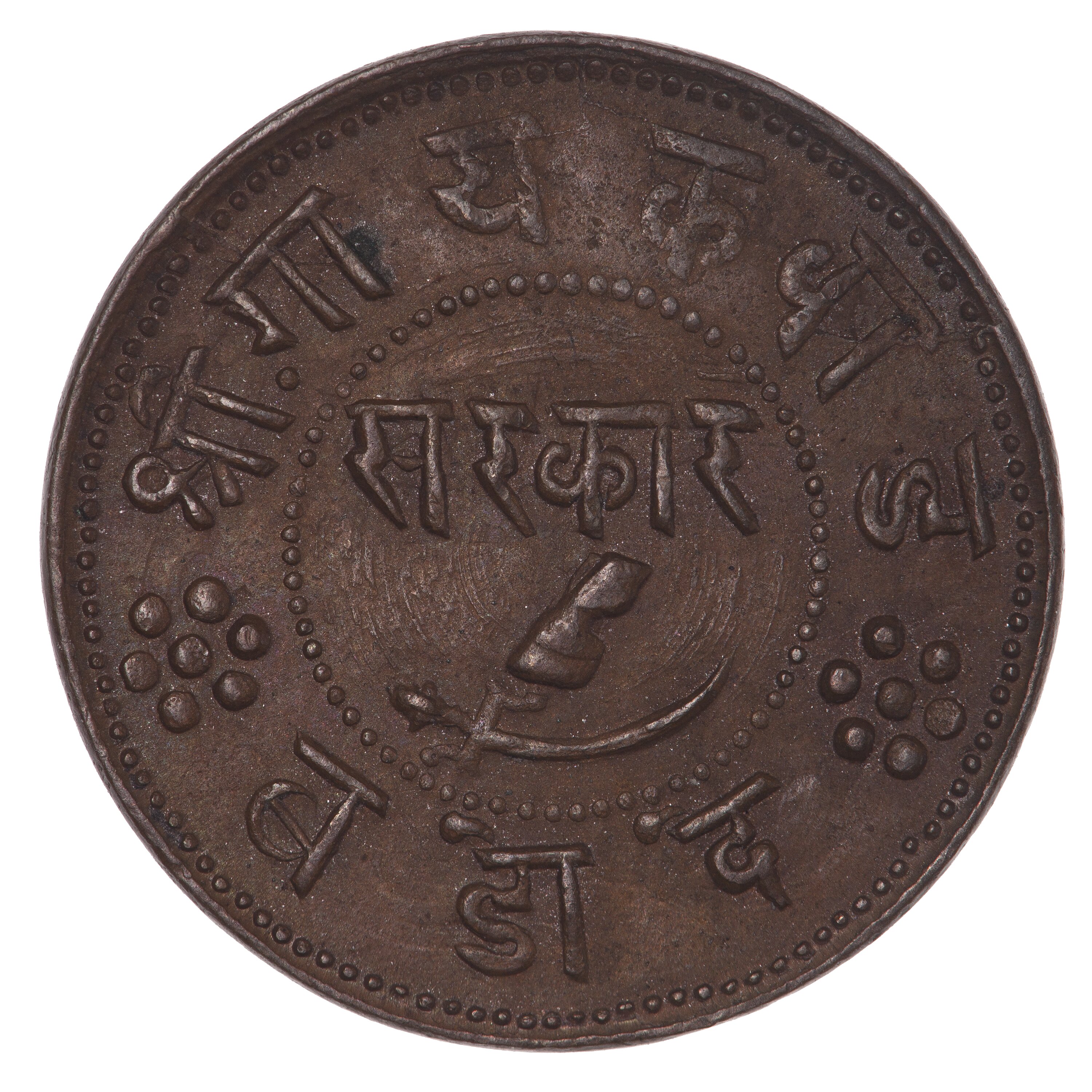 1 Pai, India, Baroda Princely State, Milled Coinage, VS 1950 (1893 AD). Mint not recorded. The coin bears a date in the Vikram Samvat (VS) era which began about 56 years and 8 months before the Christian (AD) era.