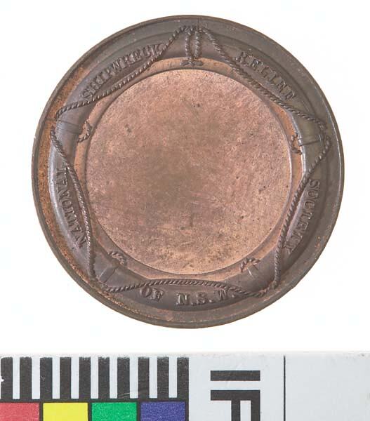 Obverse: SUNT LACRYMAE RERUM SUNT ET SUA PRAEMIA LAUDI. Reverse: NATIONAL SHIPWRECK RELIEF SOCIETY OF N.S.W.