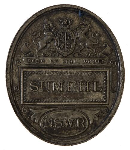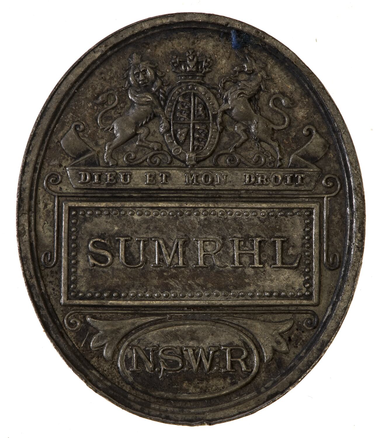 SUMRHL / N.S.W.R Royal Coat of Arms, underneath, within banner DIEU ET MON DROIT