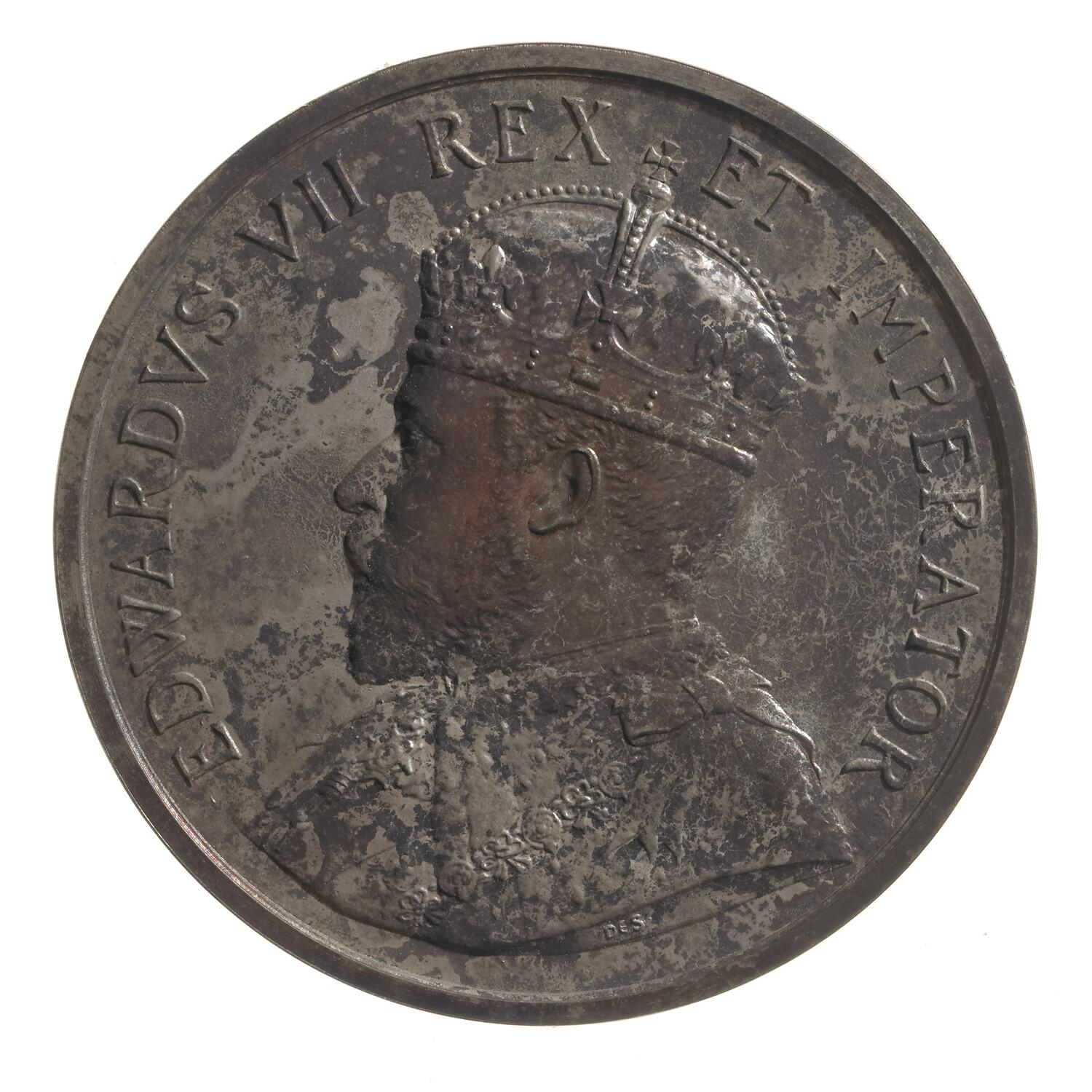 Crowned bust of Edward VII faciing left, around, EDWARDVSVII REX ET IMPERATOR on truncation in tiny letters the artist's initials, DES.