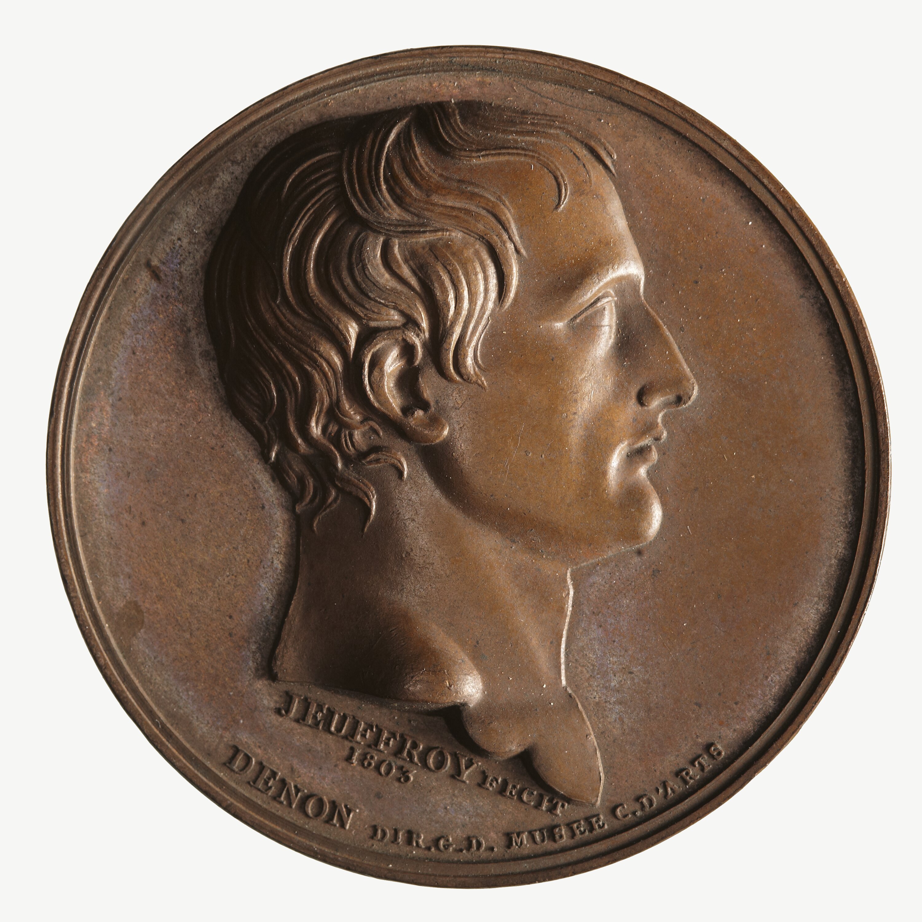 Head on Bonaparte right, below in small letters, JEUFFROY. FECIT / 1803 / DENON DIR. C. D. MUSEE. C.D. ARTS