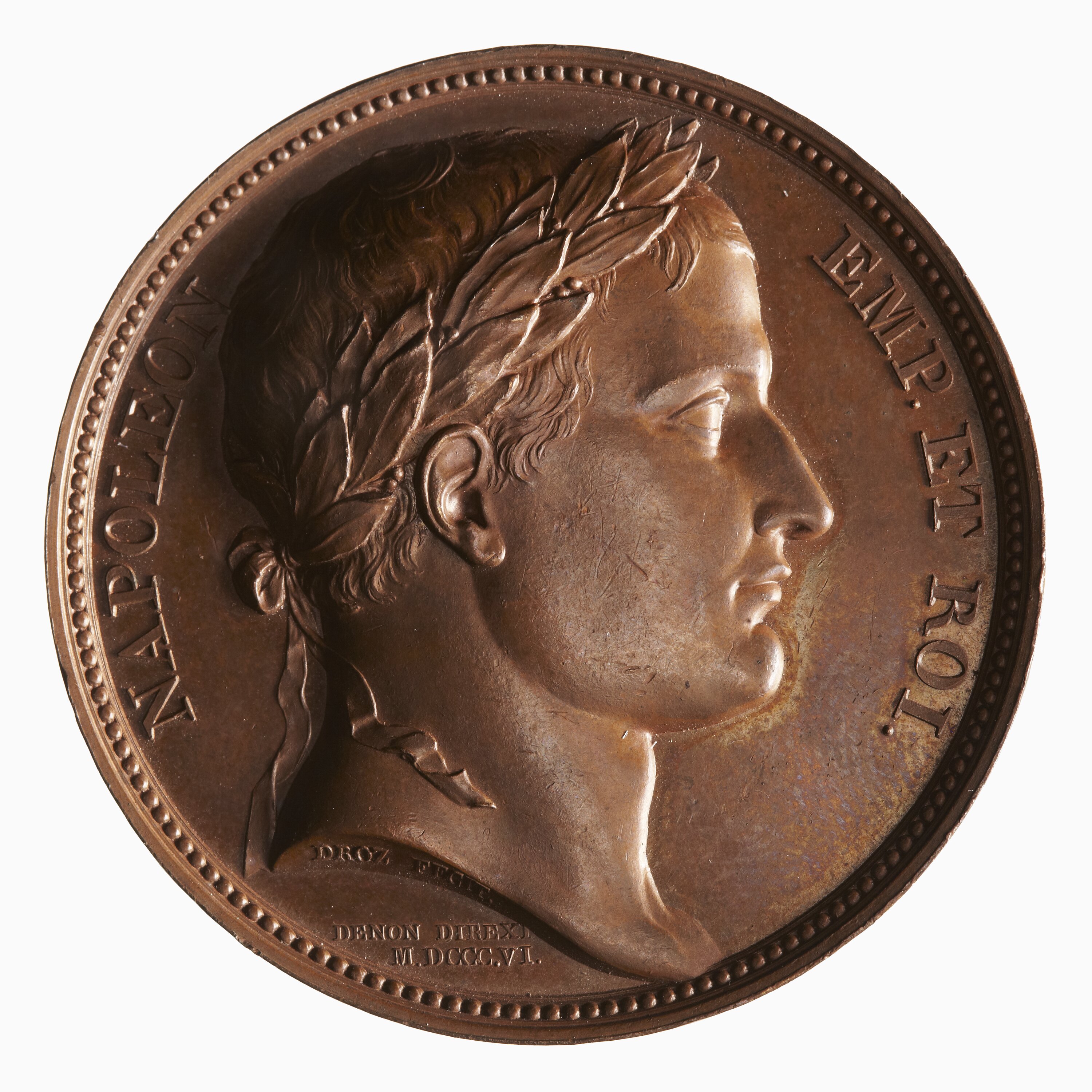 Laureate head right; around, NAPOLEON EMP ET ROI; below in small letters, DROZ FECIT. / DENON DIREX MDCCCVI