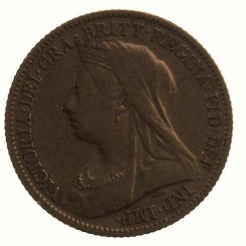 Obverse: VICTORIA . DEI . GRA . BRITT . REGINA . FID . DEF . IND . IMP . T.B. Reverse: 1900 P