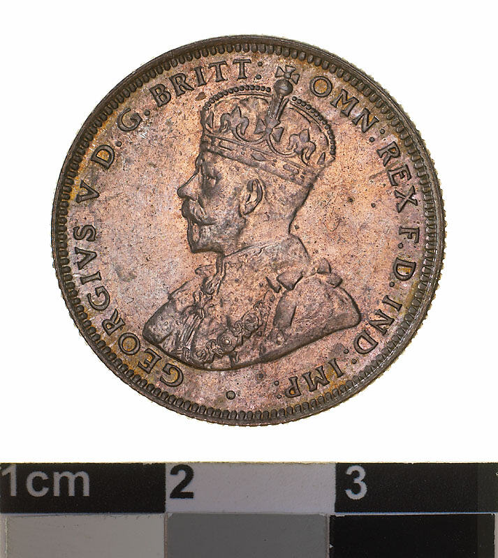 Obverse: GEORGIVS V D.G. BRITT: OMN: REX F.D. IND: IMP: Reverse: ONE SHILLING 1925 ADVANCE AUSTRALIA