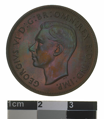 Obverse: GEORGIVS VI D: G: BR: OMN: REX F: D: IND: IMP: Reverse: AUSTRALIA 1945 PENNY. KG