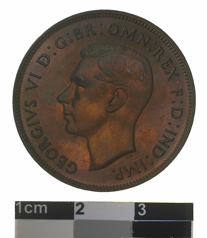 Obverse: GEORGIVS VI D: G: BR: OMN: REX F: D: IND: IMP: Reverse: AUSTRALIA 1947 PENNY. KG