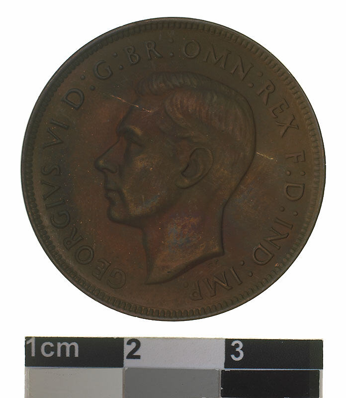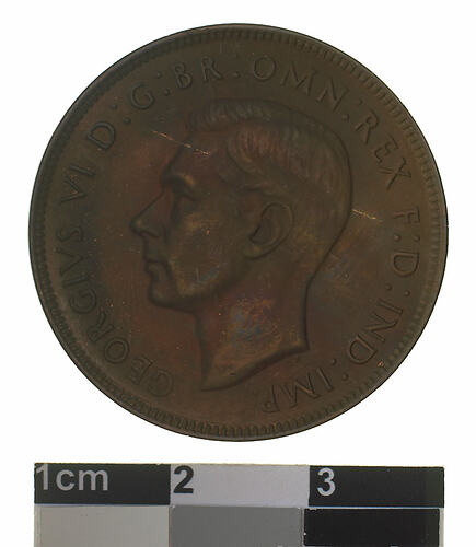 Obverse: GEORGIVS VI D: G: BR: OMN: REX F: D: IND: IMP: Reverse: AUSTRALIA 1948 PENNY. KG